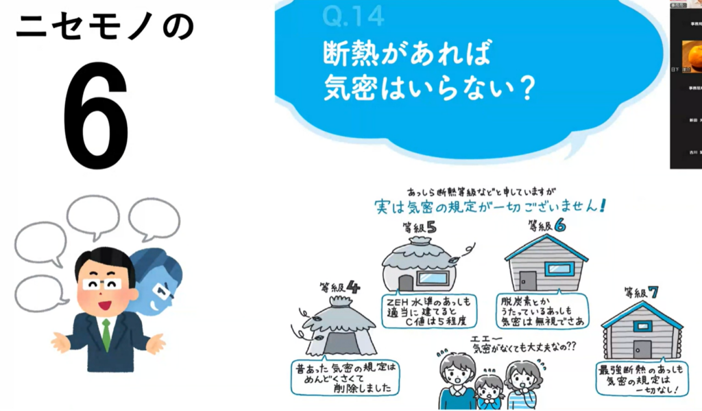 前先生の言われる「ニセモノの6」とは気密がない断熱等級6のことでした。