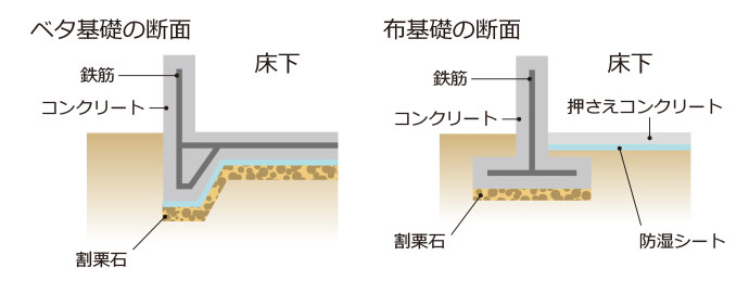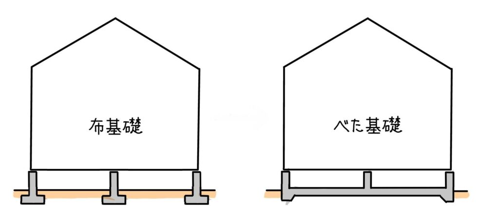 住宅の基礎には、「べた基礎」と「布基礎」の2種類があります。