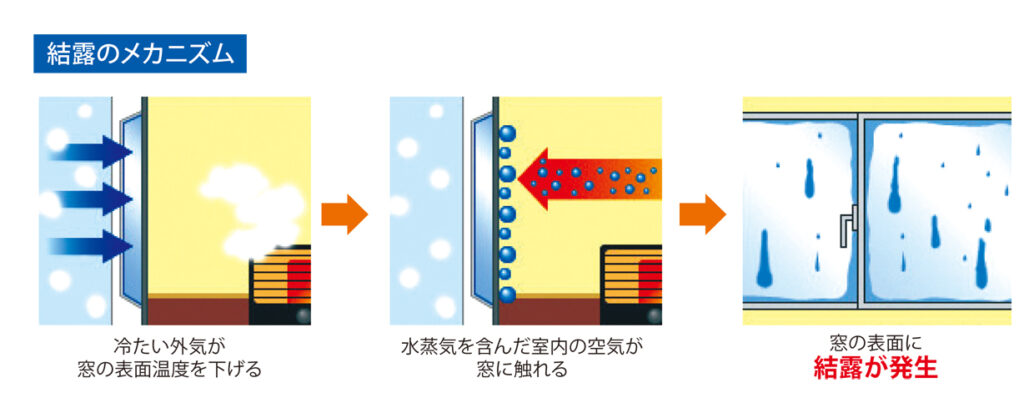 窓の結露の原因の一つは、窓が冷やされるために発生します。