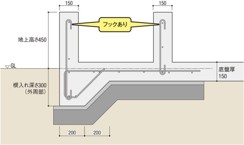 フックを省略するには、溶接されているユニット鉄筋を使うことが前提となります。