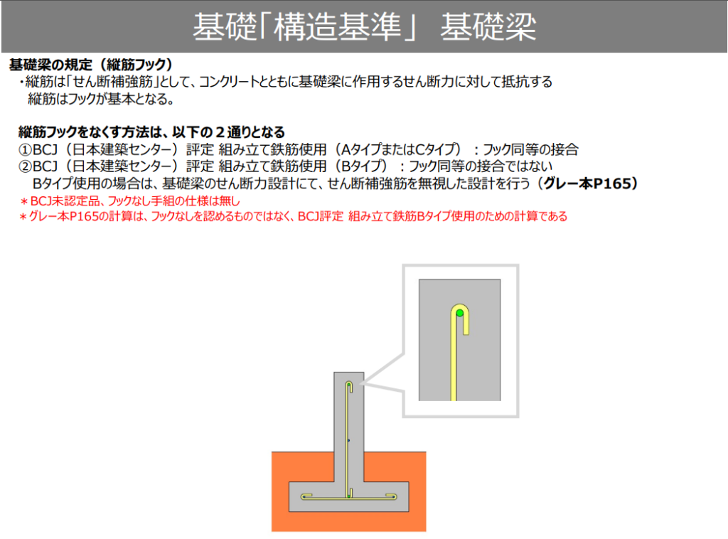 最近少し話題になっているのが、縦筋(せん断補強筋)のフックの有無です。