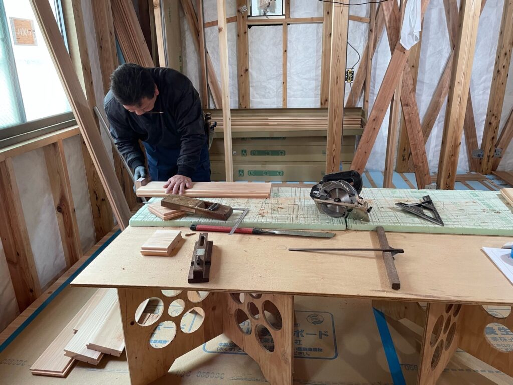 2021.03.22 新築現場にて スタッフブログ 新築現場の大工工事の様子です。 建具枠、窓枠等既製品は使わないので現場ですべて作ります。 もちろん全て無垢材です。 床は3センチの杉材です。 プチリフォーム 動画撮影 記事一覧へ戻る
